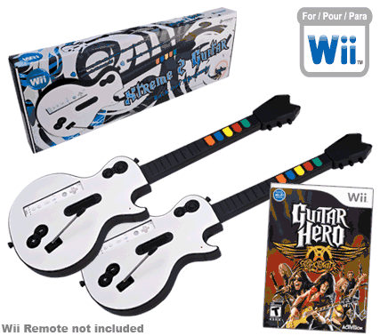 Guitar Hero Aerosmith Guitar Game for Wii + 2 x Xtreme 2 Wireless Guitar Controller for Wii  ![Guitar Hero Aerosmith Guitar Game for Wii + 2 x Xtreme 2 Wireless Guitar Controller for Wii]()
